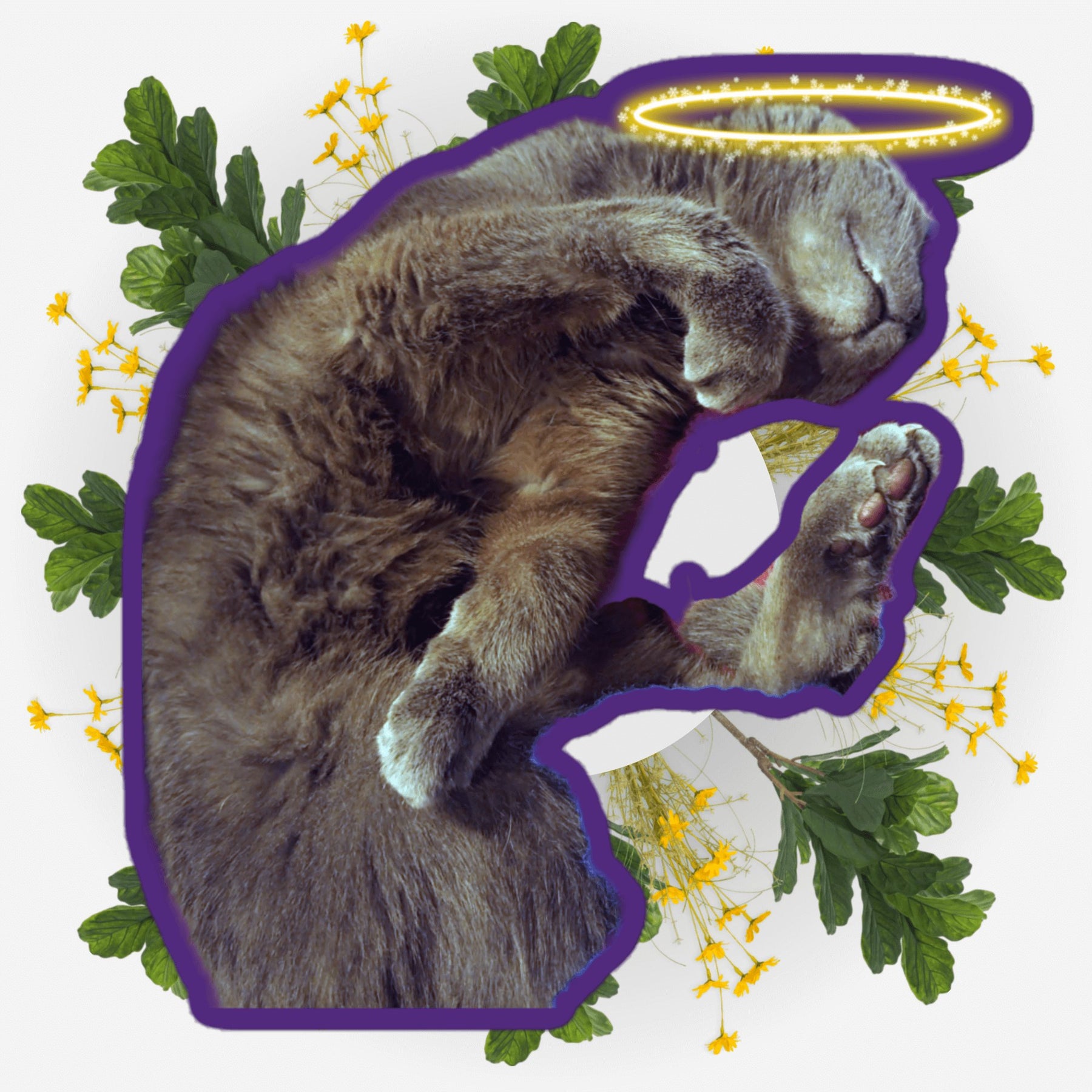 Sleeping Yoga Ver. 2 sticker design featuring a cat with a halo and floral accents.